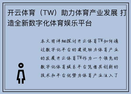 开云体育(TW)助力体育产业发展 打造全新数字化体育娱乐平台